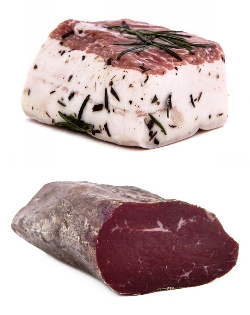 Il LARDO DI ARNAD è uno dei prodotti simbolo della tradizione gastronomica valdostana. Si ottiene dalla lavorazione dello spallotto di maiale che, adeguatamente sgrassato e poi squadrato, viene posto a maturare nei “doils”, antichi recipienti in legno di castagno o di rovere, all’interno dei quali, agli strati di lardo sovrapposti fino a riempimento, si alterna una miscela composta da sale, acqua, spezie, aromi naturali ed erbe aromatiche di montagna. Qui il lardo viene lasciato stagionare per almeno tre mesi, per acquistare il profumo e il sapore gradevolmente dolce che lo rendono un prodotto unico. La MOCETTA bovina 100% valdostana viene preparata con tagli di bovini allevati e cresciuti nei pascoli della Valle d’Aosta. La carne viene lasciata a macerare insieme ad erbe di montagna, sale, spezie e aromi naturali per almeno una ventina di giorni prima di essere essiccata per un periodo che varia da uno a tre mesi. E’ considerata un piatto molto prelibato, ideale tagliata a fettine sottili.