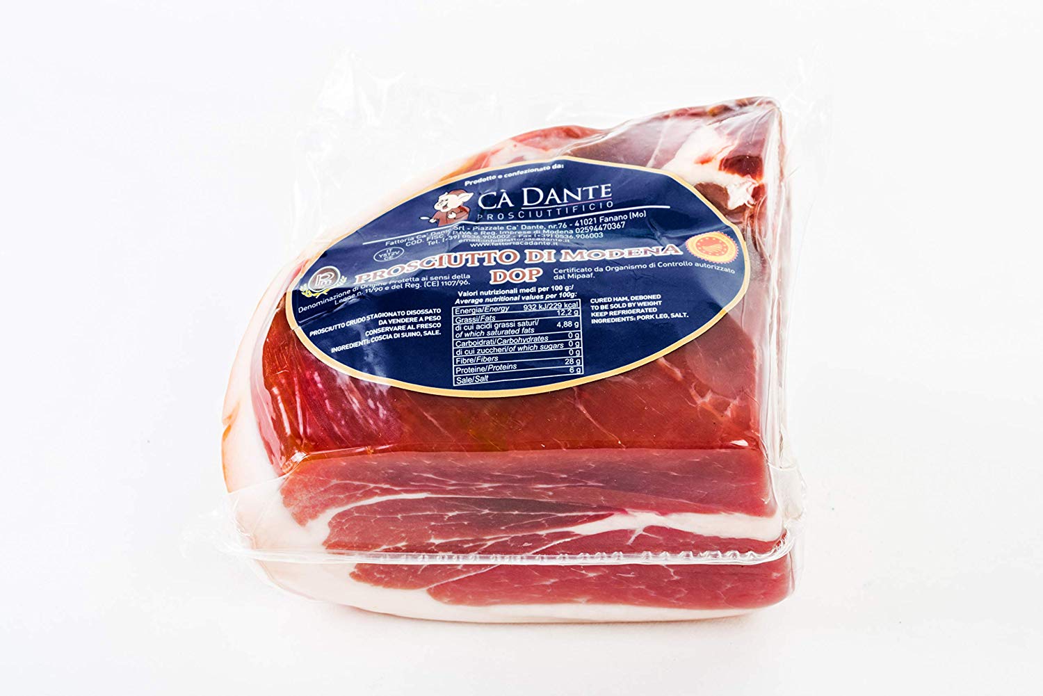 - Prodotto secondo il disciplinare della DOP Prosciutto di Modena.