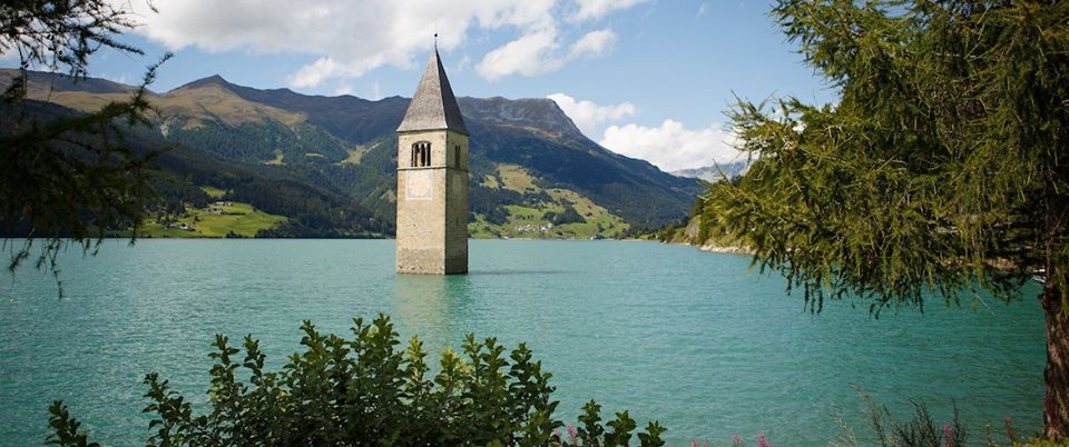 Correva l’anno 1950 quando il piccolo paese di Curon fu sommerso in seguito alla creazione di una grande diga che unificò 3 laghi. Da allora, la torre di un campanile spunta dall’acqua, rendendo inconfondibile e magico il Lago di Resia. by Chiara Marras