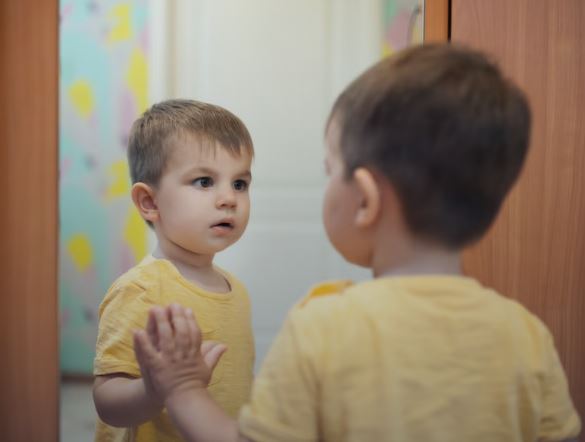In questo caso possiamo posizionare un piccolo specchio proprio sopra il bidet, in modo che il bambino possa osservarsi e appendere gli asciugamani lì accanto.