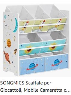 Se un neonato avrà bisogno nella sua cameretta semplicemente di un lettino, un fasciatoio e un tappetone morbido su cui giocare; un bambino da un anno in su avrà bisogno anche di una piccola libreria, uno scaffale, una seggiolina e un tavolino bassi per poter disegnare o praticare attività creative. https://amzn.to/33eYnoz