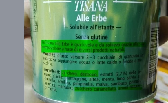 Le persone che al supermercato trovano una miriade di questi prodotti, con scritto sulla confezione la parola TISANA, pensano di acquistare un prodotto salutare, in realtà si tratta per circa il 97% di zuccheri solubili con qualche aroma e una briciola di polvere di erbe.