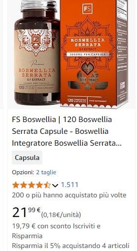 - Boswellia: Conosciuta per le sue proprietà antinfiammatorie, può essere utile in caso di artrite e dolori articolari.