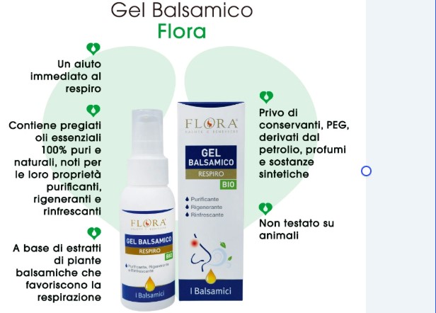 Fresco e forte, il Gel Balsamico di FLORA è un aiuto immediato al respiro, grazie ai pregiati oli essenziali 100% puri, naturali e totali, noti per le loro spiccate proprietà purificanti, rigeneranti e rinfrescanti.