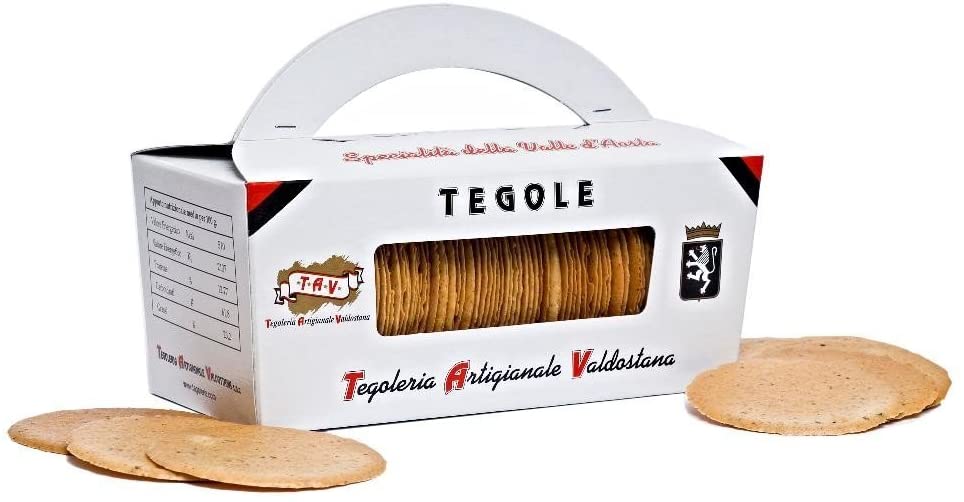 Le tegole (in francese “tuiles”) sono dei biscotti a cialda tipici della Valle d’Aosta. Il nome deriva dalla loro forma simile ad una tegola di tetto. Furono create intorno agli Anni Trenta dalla famiglia di pasticceri Boch in seguito ad un loro viaggio in Normandia. Si tratta di biscotti leggeri e fragranti, ottimi come colazione e merenda, da inzuppare nel latte, nel tè e nel caffè.