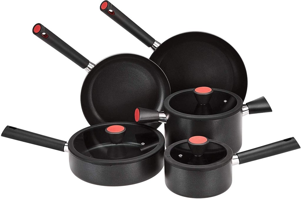 Pro: secondo le recensioni su Amazon, questo set ha un eccellente rapporto qualità-prezzo. Le pentole sono di buona qualità, resistenti e antiaderenti.