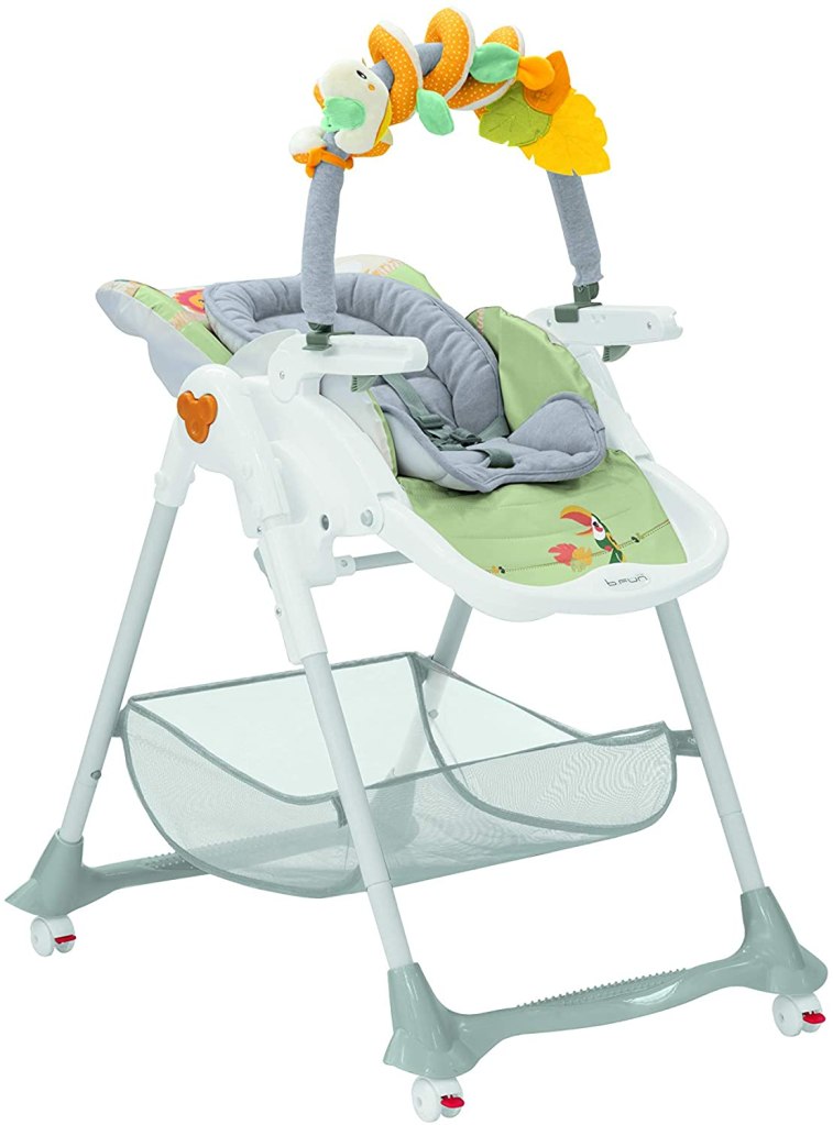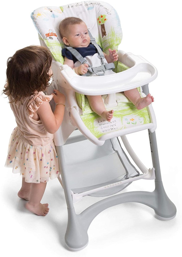 Un seggiolone che può essere utilizzato a lungo grazie alla sua funzionalità e versatilità. La seduta si può infatti stendere completamente e funzionare da sdraietta per i primi mesi in cui il piccolo può solo stare sdraiato. Si può regolare l’inclinazione della seduta in modo da consentire alla schiena di stare completamente stesa. Il riduttore è ideato per avvolgere e contenere il corpo del neonato e prevenire cadute. È realizzato in tessuto morbido e gradevole al tatto. Il seggiolone si può regolare in altezza e lo schienale si posiziona in modo da essere comodo e facile da reclinare in posizione più dritta. La pedana per i piedi è regolabile.
