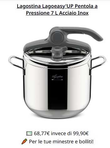 - Lagostina: Un classico, sinonimo di qualità e durata.