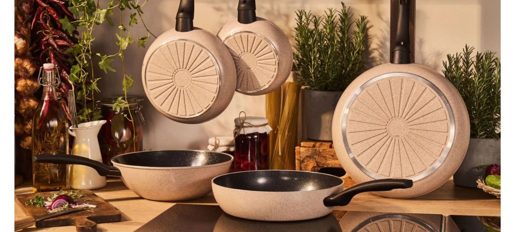 - Pietra: Anche le padelle con rivestimento in pietra possono presentare colori chiari. La tonalità può variare a seconda dei minerali utilizzati per creare il rivestimento.