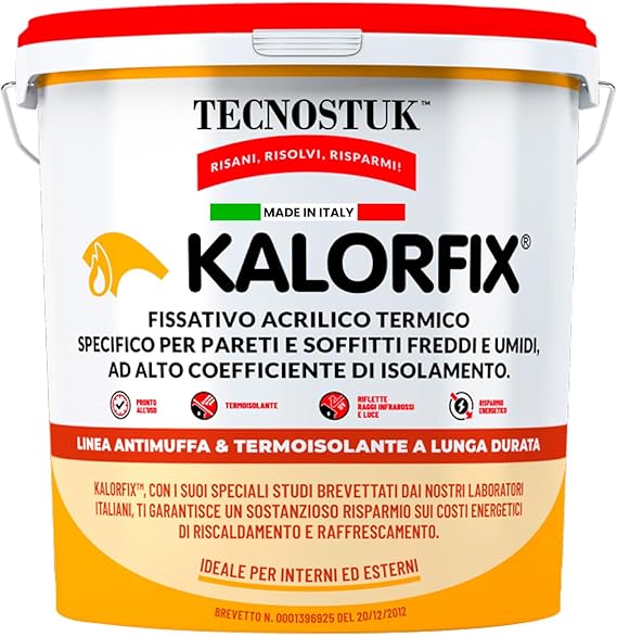 Eurocali Kalorfix Tecnostuk è un fissativo isolante termico per muri interni ed esterni, realizzato in Italia