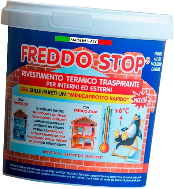Eurocali Freddo Stop Tecnostuk è un rivestimento termico traspirante progettato per isolare muri molto freddi, sia interni che esterni.