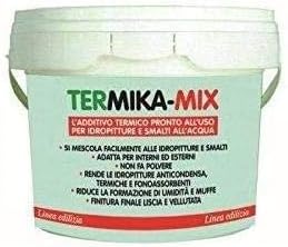 Termika-Mix è un additivo termico pronto all’uso, progettato per essere miscelato con idropitture e smalti all’acqua. La sua formula contiene microsfere di vetro che conferiscono alle pitture proprietà termoisolanti.