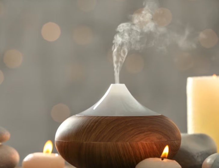 - Diffusione Aromatica: È il modo più semplice e diffuso. Aggiungete qualche goccia del vostro olio preferito in un diffusore di oli essenziali (a ultrasuoni o a candela) per riempire l’ambiente con un profumo rilassante. Perfetto per creare l’atmosfera giusta prima di dormire o durante la meditazione.